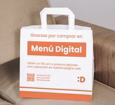 Se desarrolla la identidad visual para Menú Digital, un restaurante ficticio concebido como un proyecto académico. La marca se plantea con una personalidad cercana, juvenil y práctica, transmitiendo frescura y apetito a través de un lenguaje visual sencillo y directo. El sistema gráfico incluye la creación del logotipo, la definición de la paleta cromática y la tipografía corporativa, aplicados a soportes como el packaging —en este caso, bolsas de entrega— y concebidos también para su extensión en señalética, redes sociales y otros medios digitales. El resultado es una identidad funcional y reconocible, diseñada para aportar claridad, facilidad de uso y proyección digital a un negocio de restauración contemporáneo.